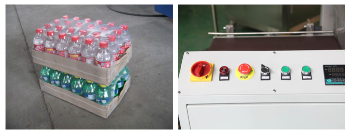 具有輸送進(jìn)瓶、裹膜、封切、收縮、冷卻定型等流程的全自動(dòng)化功能。