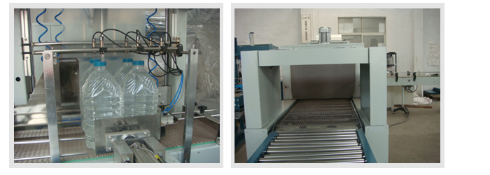 包裝流程:該機(jī)采用 進(jìn)料→理瓶→套袋→封口→熱收縮→冷卻→碼垛。